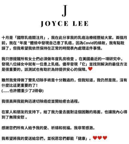 但是,在2021年发生诊疗,李乐诗恶运被确诊为乳癌,还需要收受切除乳房手术,临了李乐诗以刚劲的意识和家东谈主的救济为力量,最终胜利击退病魔。抗癌胜利后的李乐诗鲜少出目下公众视线,过着低调的生涯。